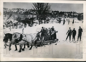 1950 Press Photo John Cameron using his horse drawn sleigh to go places