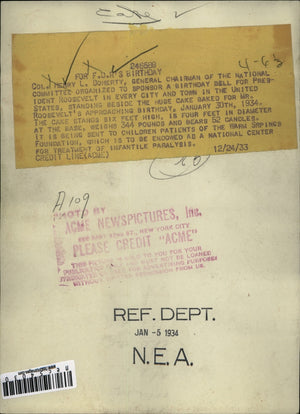 In Celebration of the President's birthday to be sent to Warm Springs Foundation.