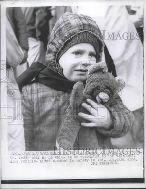 1962 Press Photo Danny Olliver Waits With Teddy Bear For New Jersey Evacuation