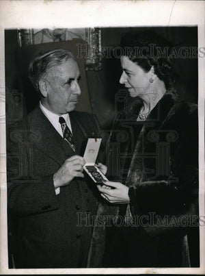 1944 Press Photo Judge Goldstein gives Emily Warner the Grand St. Boys medal, NY