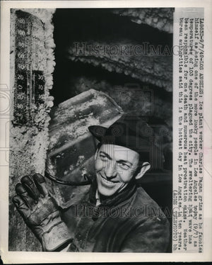 1949 Press Photo Ice Plant Worker Charles Fagan At Works During Heat Wave