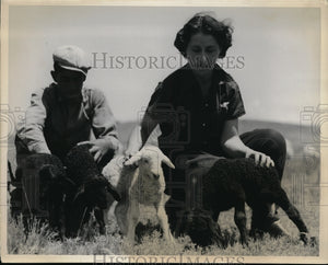 Press Photo Couple with White Lamb and Three Black Lambs in Santa Fe, New Mexico