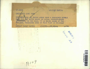 1950 Press Photo Chicago, Mrs Al Mayer & a checkered marble cake at show