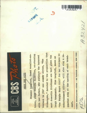 1951 Press Photo Famous Singer & Actress Frances Langfod on "The Bickersons"