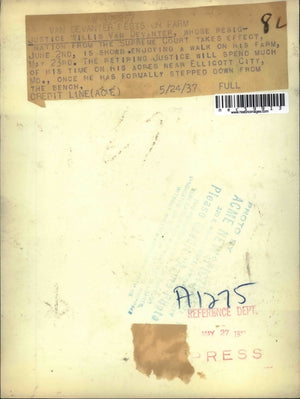 1937 Press Photo Justice Willis Van Devanter Whose Resignation From Supreme