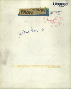 1964 Press Photo 18 tons of rubber fendering installed on New pier at Erie, Pa