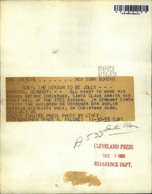 1953 Press Photo Santa Clause awaits 1st call of the 1955 season
