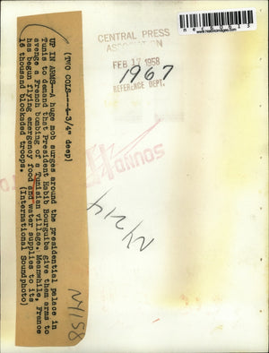 The mob demand that Pres. Habib Bourguiba give them arms to avenge a French bombing of a Tunisian village.