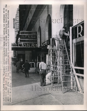 1948 Press Photo Workmen putting barriers at Hotel Aster for election night