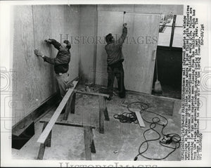 1969 Press Photo San Franisco Workers nail plywood sheets to Windows san Francisco State College