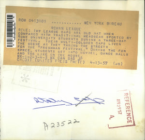 1957 Press Photo Rome University Students Showing Headgear During Festival
