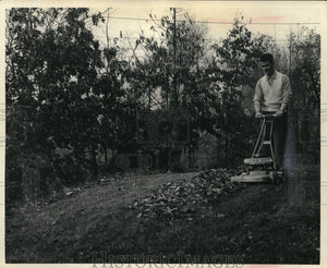1961 Press Photo Man Mowing a Yard with Push Lawn Boy Mower