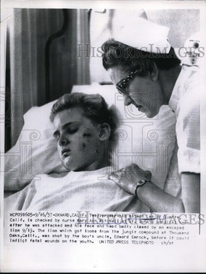 1957 Press Photo Albert Lee checked by nurse Mary ann Mitchell at St. John's Hospital in Oxnard, Ca.