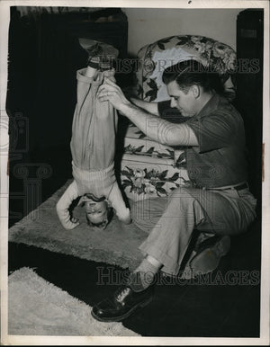 1949 Press Photo Dennis LeHotan, 7, father, Donald LeHotan
