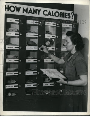 1944 Press Photo Attendant checks calorie contents at food o mat
