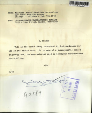 1962 Press Photo A shield being introduced by Ink-Sink Erator for all of its del
