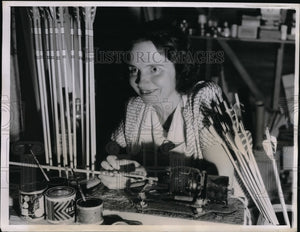 1935 Press Photo Mrs. Lena Gunn works on bow and arrows Los Angeles Ca.