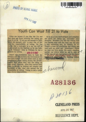 1967 Press Photo Krissann Portale 14 of Harding High School, lowering voting age