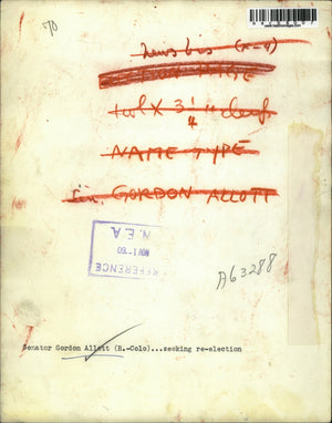 1960 Press Photo Senator Gordon Allott R of Colorado
