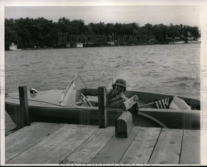 1959 Press Photo Onauchee, Wisc Mrs Marvin Kreiser on her lake mail route