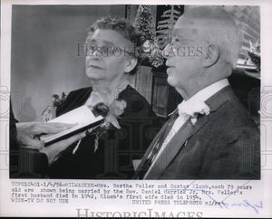 1956 Press Photo Bertha Feller and Gustav Klumb married by the Rev. Daniel