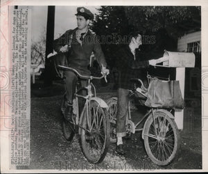 1949 Press Photo David Hutchinson Kenneth Swanson Delivers Mail