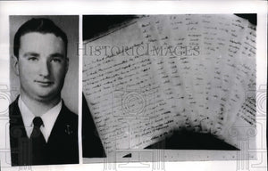 Lt. Harris was captured aboard USS Pueblo off the coast of North Korea. He is said to have written a spy confession which is shown in the photo. The statement appears to match the content of a Communist North Korean radio broadcast. His mother, Mrs. Stephen Harris stated that she is uncertain that it was the voice of her son that was broadcast by the North Korean radio as the Communists claim.