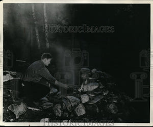 1935 Press Photo Roland Erickson At Fishing Camp In Quebec