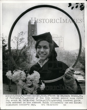 1968 Press Photo Wellesley Mass. Barbara Evans wins hoop rolling contest