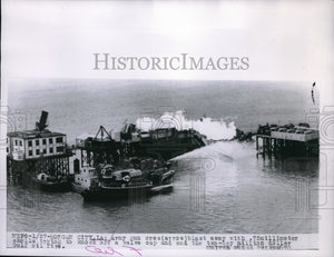 1953 Press Photo Army gun crew blast with .75 millimeter shells Morgan City, LA.