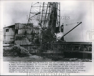 1953 Press Photo Timbalier Bay Gulf Refining Co. Burns Out of Control