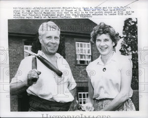 1959 Press Photo Cyril N. White & Wife Phyllis in Garden at Church of St. Peter