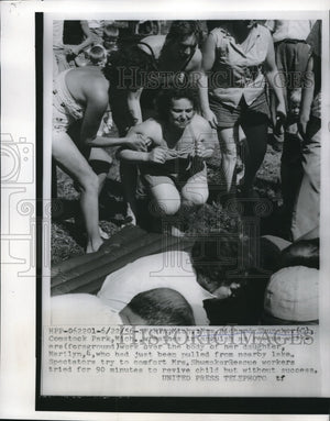 1956 Press Photo Mrs. Richard Shumaker distraught as Marilyn resuscitated