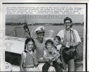 1958 Press Photo Mrs. Spelius with Children Docks in Evansville on Expedition