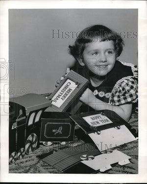 1951 Press Photo Diane Coates & a novel Yule Christmas card