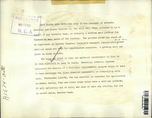 1959 Press Photo Spencer Chemical Co. wild oat plant experiment