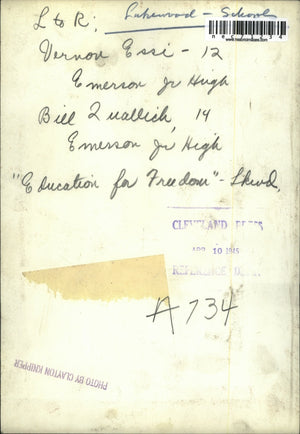1945 Press Photo Vernon Essie & Bill Luallich of Emerson Junior High