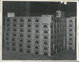 1933 Press Photo Cargo crates stacked at La, Calf harbor for ship loading