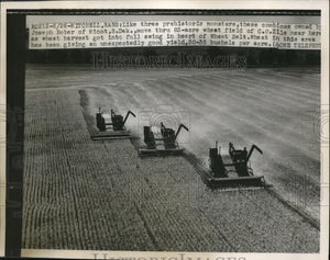 1950 Press Photo combines owned by Joseph Bober work in wheat field - nec72247