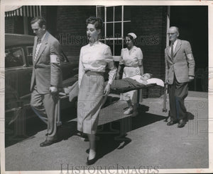 1953 Press Photo Paramedics carry victim on a cot stretcher