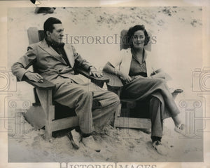 1939 Press Photo Winstead, Conn Peter Arno, cartoonist & wife at the beach