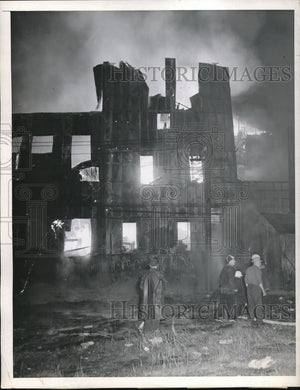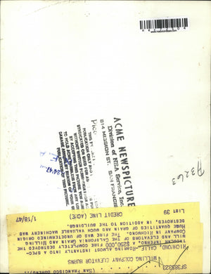 1947 Press Photo Richmond, Calif Grain & Mill Co burning as firemen battle it