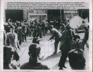 1953 Press Photo Rome, Italy rioting youths vs communists papers