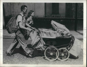 1941 Press Photo London Couple on Vacation with Buggy and Backpacks