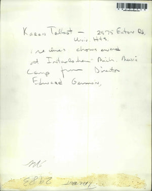 Press Photo Karen Talbot gets chows award in music from Ed German