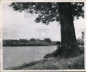 1949 Press Photo Luna Lake, man out fishing from the shore