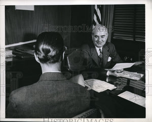1944 Press Photo Leo Donovan interviews parolee for job in Chicago