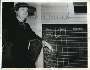 1941 Press Photo Mrs HE Kimmel points to husbands name on ships board