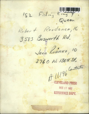 1952 Press Photo Cleveland fishing King & Queen Rbt Readdance, Jean Rusinko
