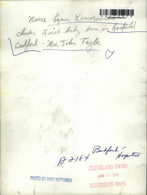 1968 Press Photo Nurse Lynn Komorowsski & 1st baby & Mrs J Taylor at Bedford Hos
